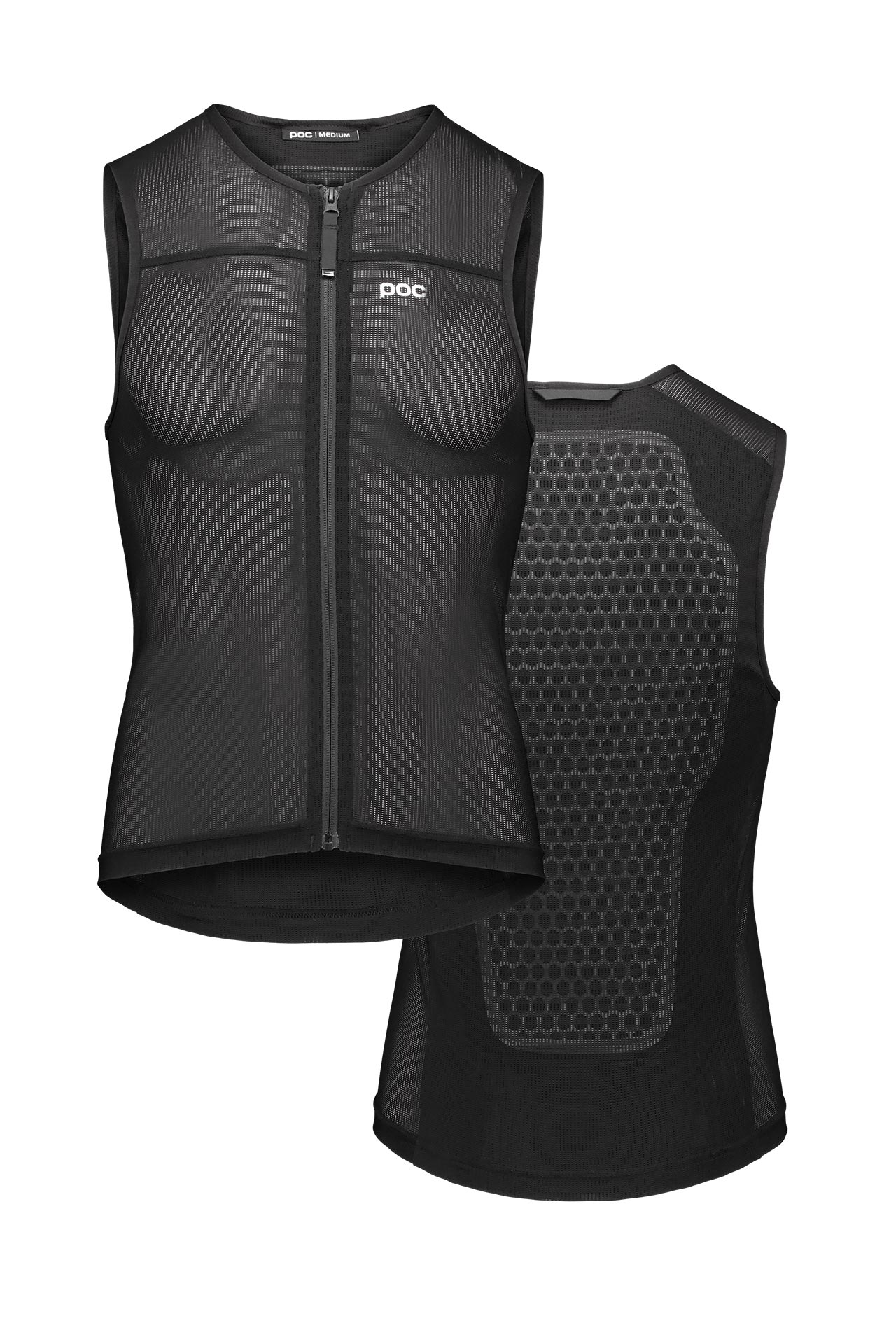 The honeycomb has a couple additional advantages. It’s more flexible, allowing it to mold to the wearer’s body. And it’s highly breathable as well. Combined with a highly wicking and breathable vest material, it’s POC’s most ventilated offer to date.