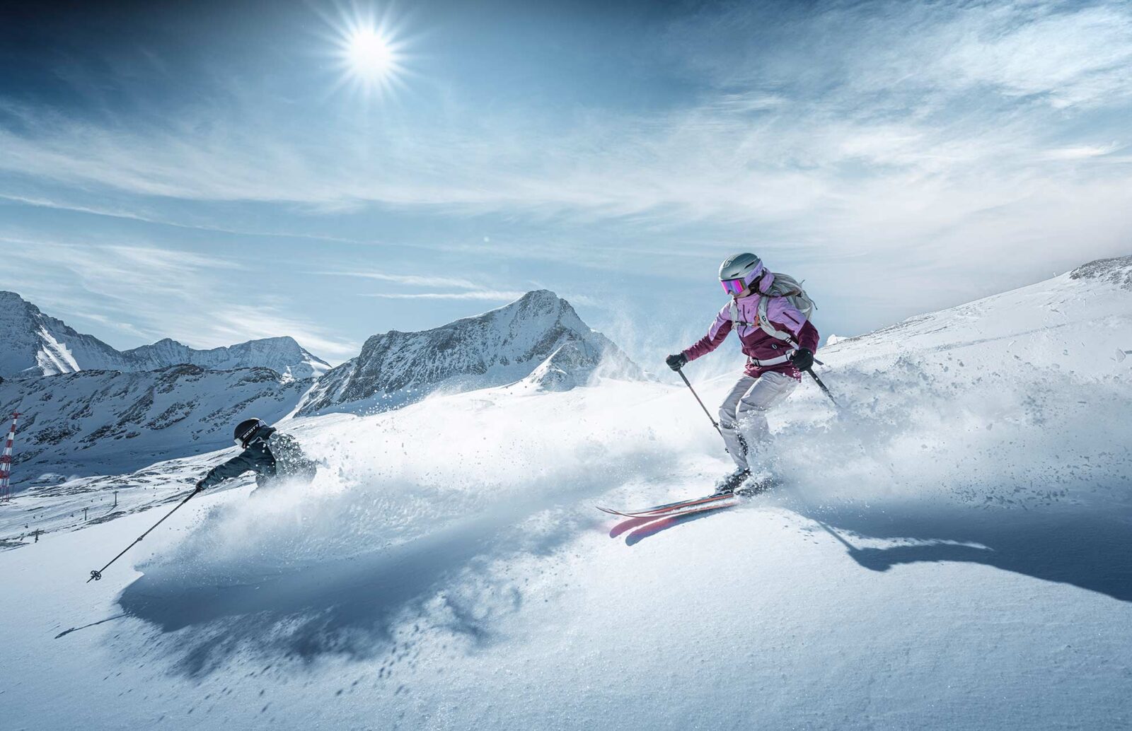 The Kitzsteinhorn ranks among Austria’s most popular freeride spots. From the highest access point at 2,900 meters, various freeride routes descent a total of 2,450 vertical meters. The high-alpine location provides the ski resort with snow security and many days of prime powder conditions. A comprehensive information system, consisting of a “Freeride Info Base” at the Alpincenter and an “Info Point” at each route access point, provides information for safe backcountry riding.