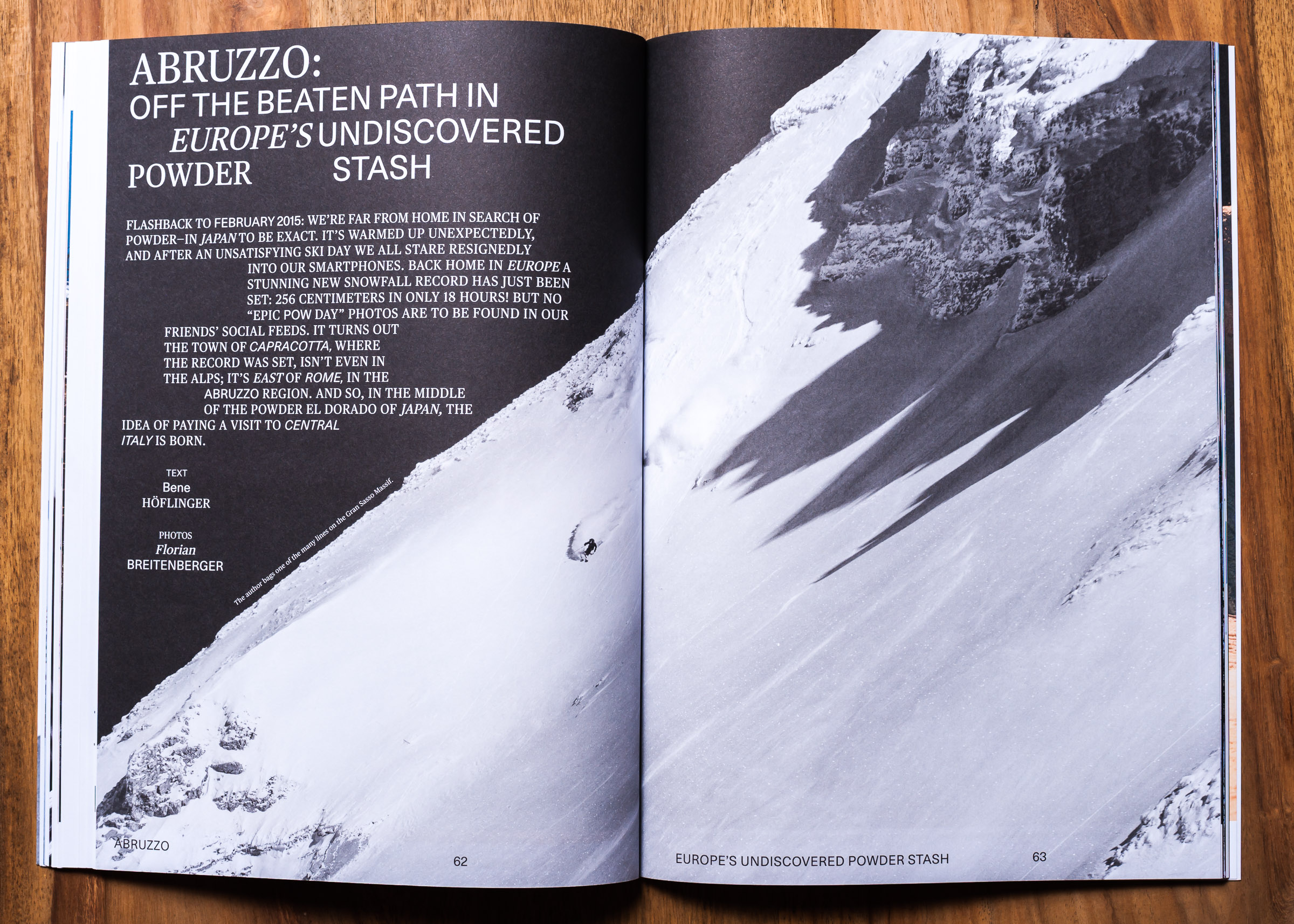 An Austrian crew ventures to central Italy in search of untracked lines in our next feature on the Abruzzo region, where the town of Capracotta currently holds the one-day snowfall record: 256cm in only 18 hours! Intrigued by tales of legendary dumps like this, Innsbruck’s Freeski-Crew headed south to explore one of Europe’s last undiscovered powder havens.