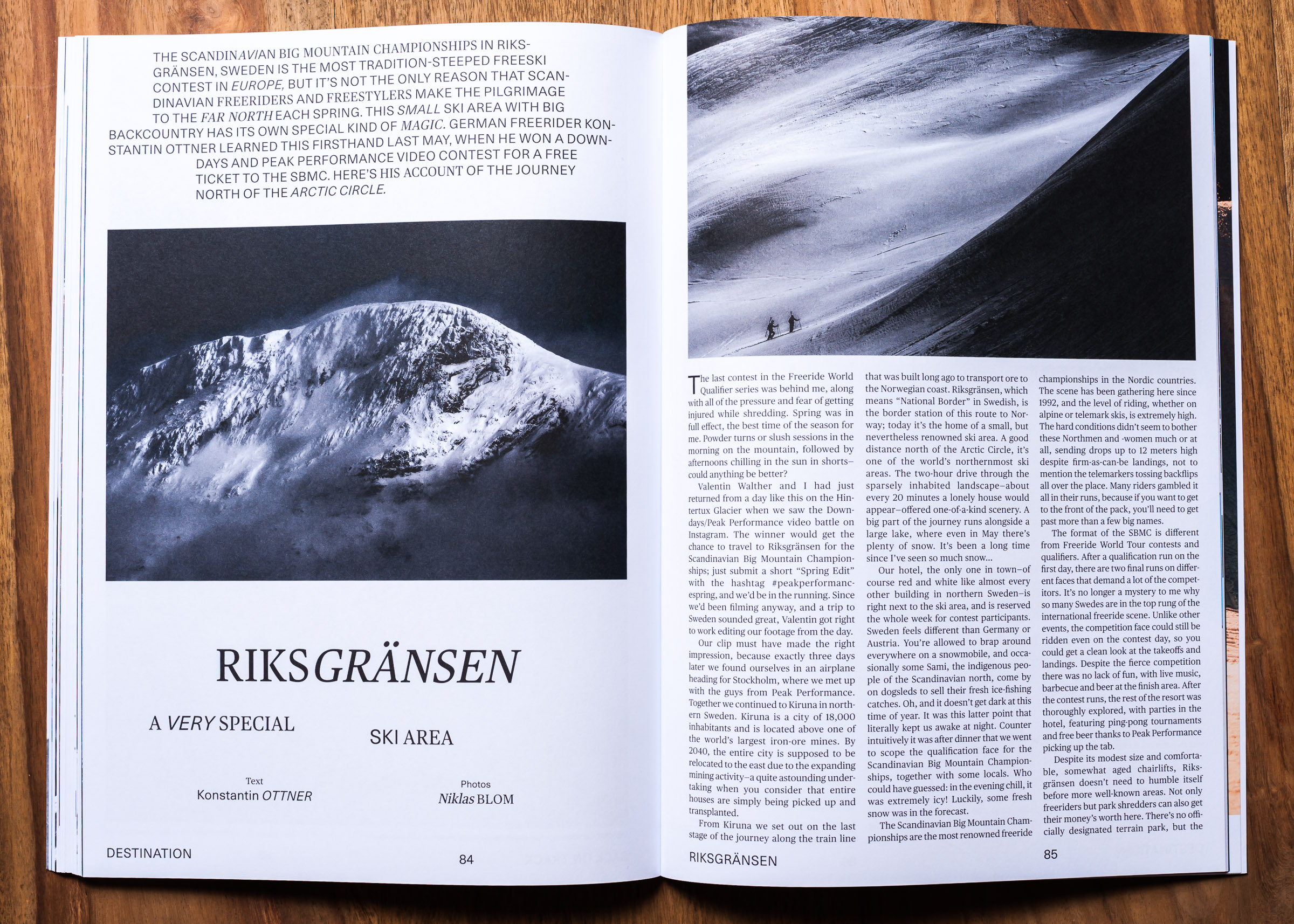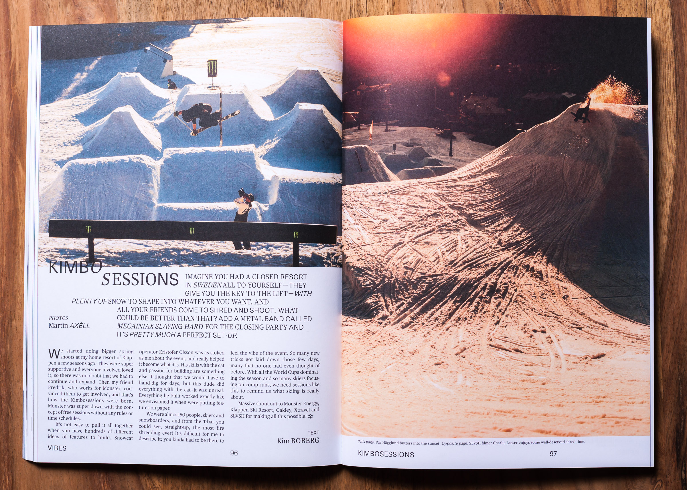 There’s plenty more in this issue as well: event recaps from the laid-back free-touring event Back on Track, the groundbreaking park jam Kimbosessions and the Swedish Big Mountain Championships in Riksgränsen; an interview with skiers Tom Ritsch and Tom Granier; a profile of the Seeking Nirvana webisode project; a look at the development of Livigno as a freeride destination; and of course an action-packed photo gallerY!