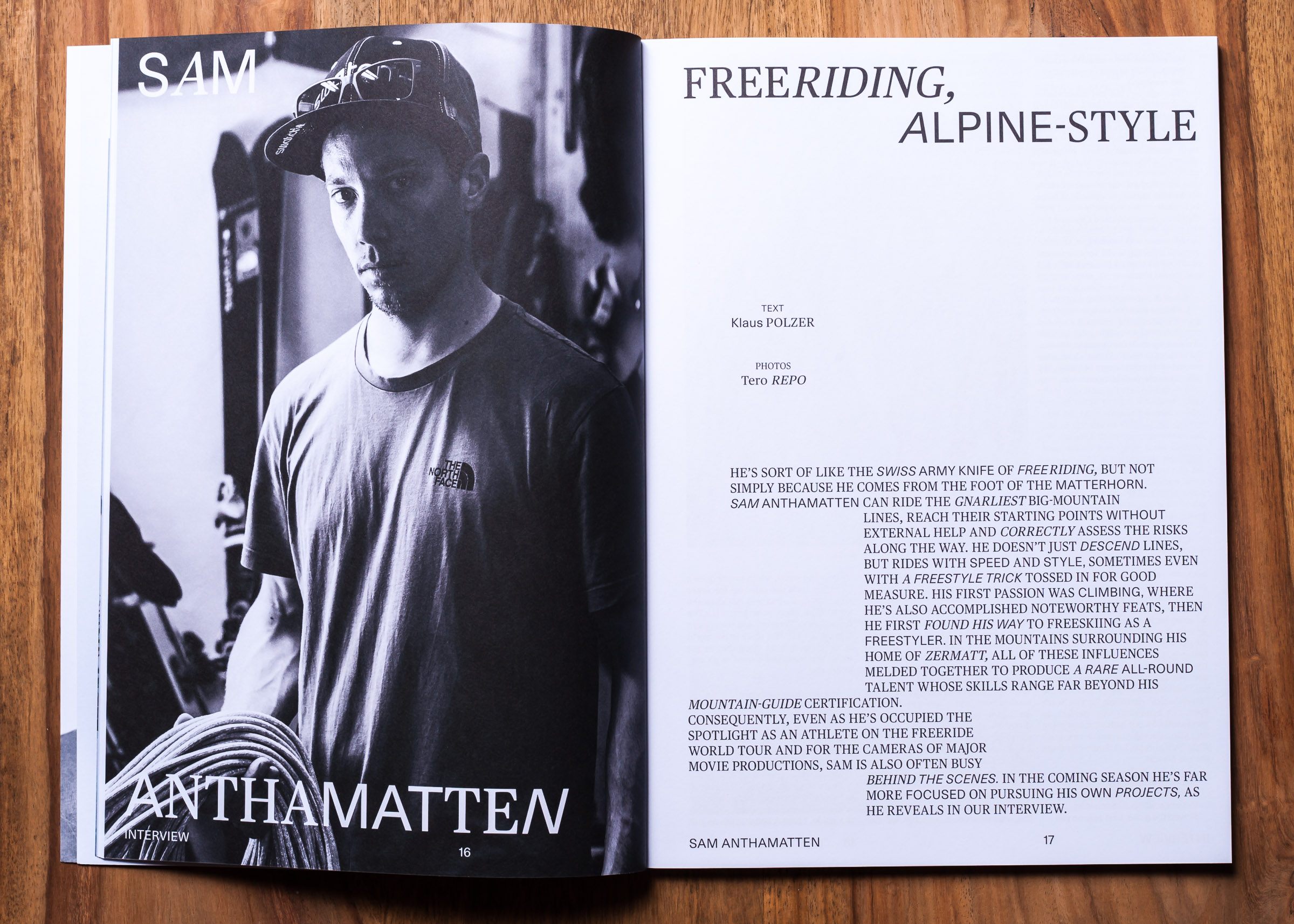 Sam Anthamatten: Freeriding, alpine style. Featuring photos by Tero Repo.
