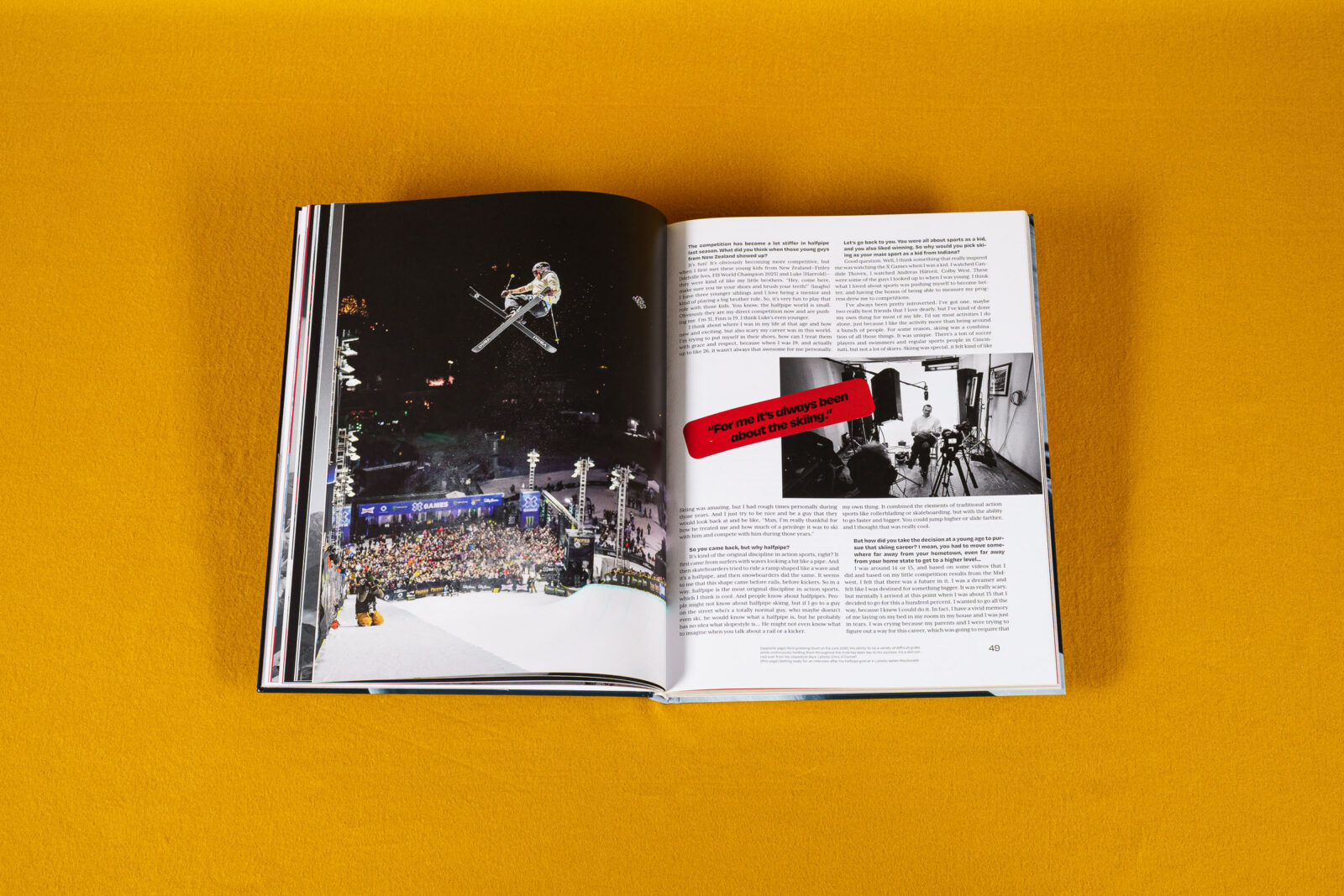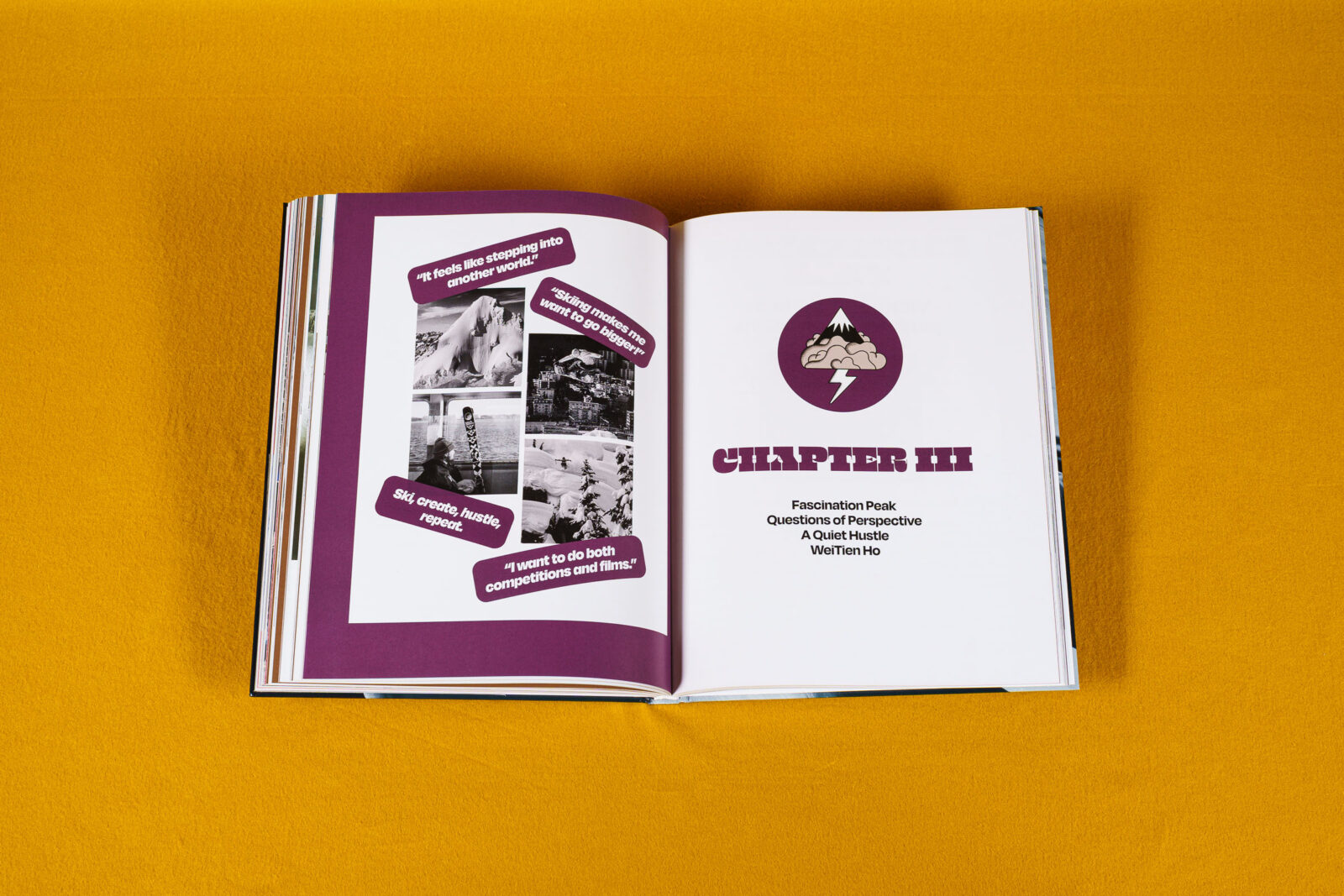 Of course, there’s much more to find in Ski Stories, Volume 6. We have a long profile about Magma, one of the most prolific crews in today’s freeskiing landscape, very distinct in their own approach to story-telling and movie production. We have in-depth interviews with Nick Goepper, who is about to enter his fourth Olympic winter season with the realistic objective of a fourth medal; with Lily Bradley, who keeps rocking the freeride scene but cares about so much more than snow depths and weather forecasts; and with WeiTien Ho, who took the Xtreme Verbier by storm last year, but lived between tire choices and spring rates when we spoke to him during his mountainbike season. Plus there is a look behind the scenes of two unique events last winter: the El Tony Crew Clash, which brought together skiers and snowboarders, and the TBL Sessions, which put marginalized groups in skiing on the main stage. Finally, all is sprinkled with a dozen spreads of breathtaking ski photography—a classic gallery.