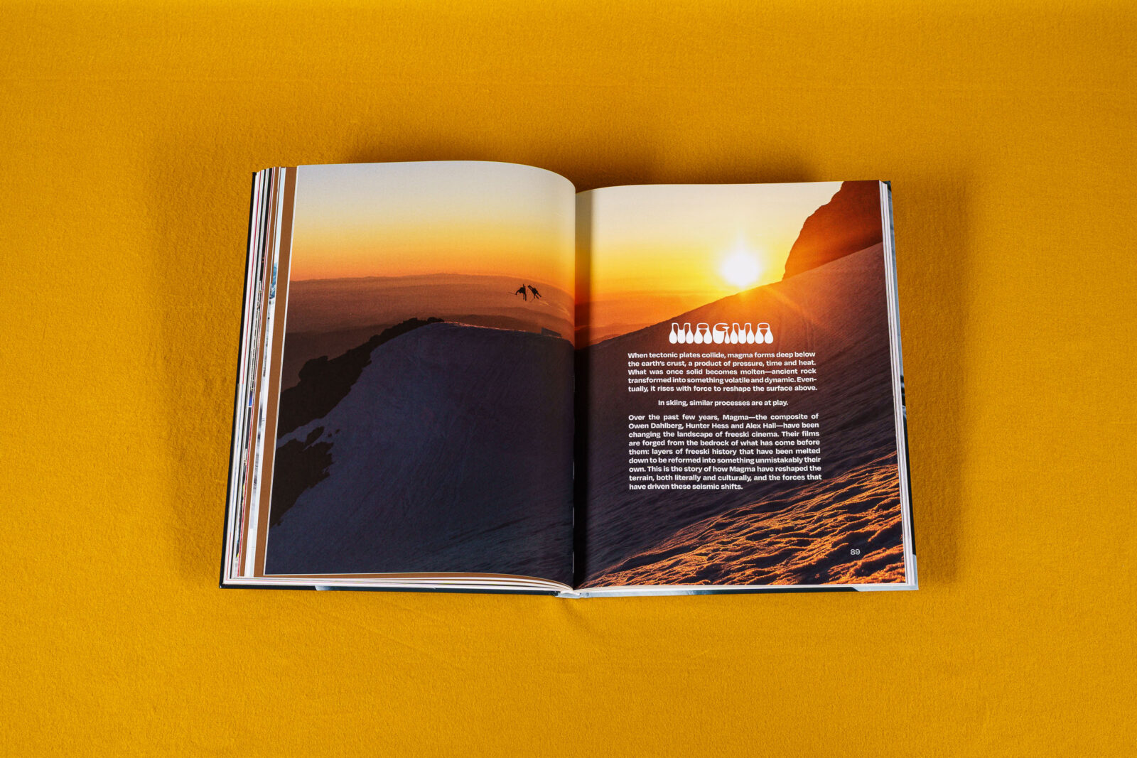 “Seeking Simplicity”—that’s the headline of one of our book stories, but also the concept of German-Austrian photographer Christoph Johann and the scheme for this year’s cover. A classic freeride shot by Christoph, capturing Canadian skier Simon Hillis in Cordova, AK. The production matches the classic approach with a shiny, high-end finish and the design is reduced to the max, letting the photo speak. Hint: You can add to the design yourself by applying one of the included stickers, making for an even cleaner appearance. Still, the full book jacket is not just simple: the photo wraps around the whole book and gives you a glimpse of the wild terrain where the photo was taken.
