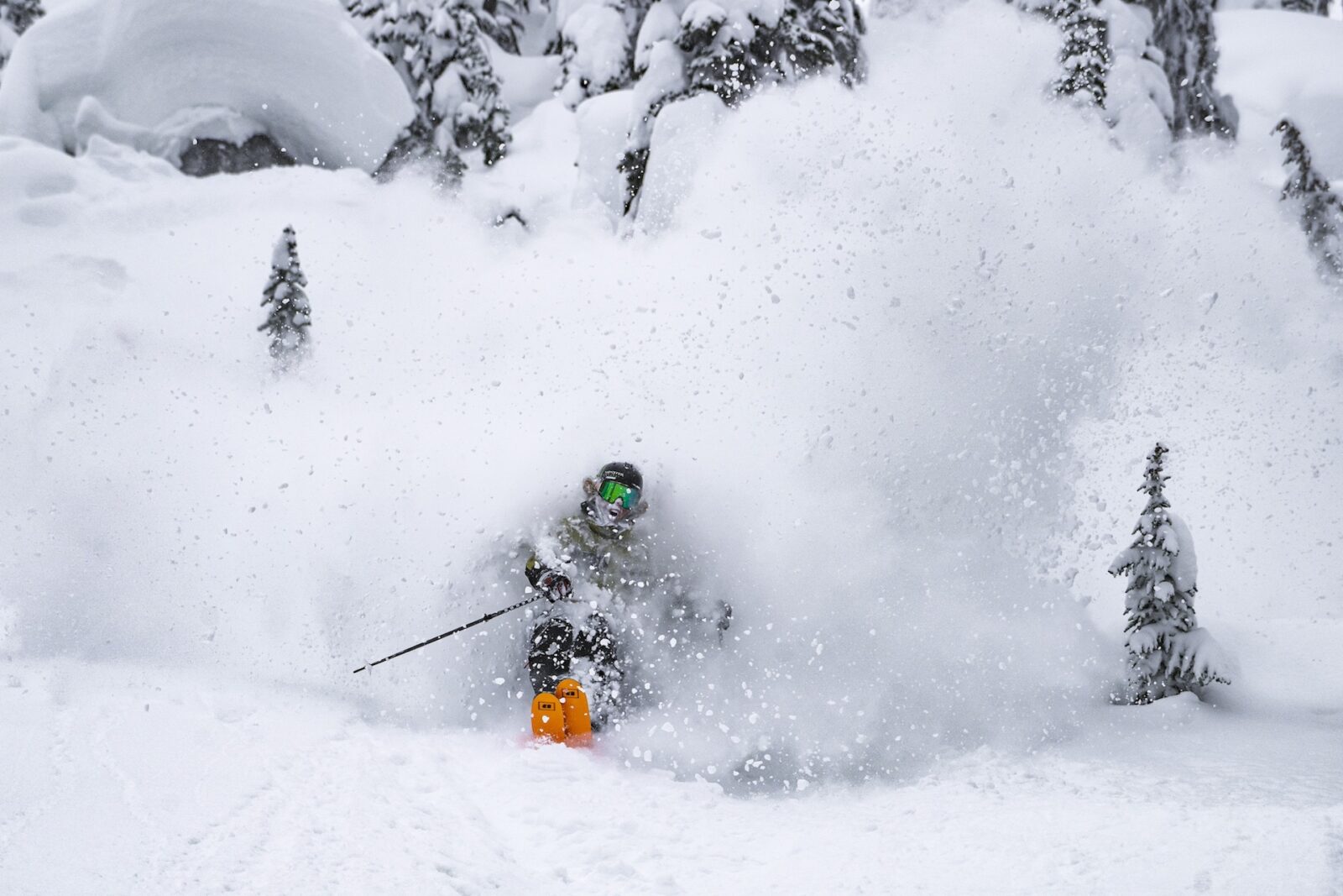 Sammy Carlson blasting a pow turn while filming for North of Now.