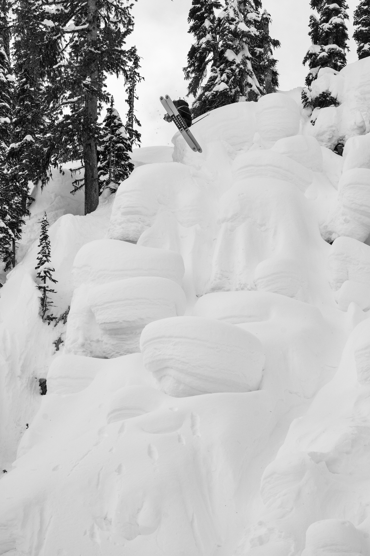I had to learn to always respect the danger of it. I was lucky to go up there the first time with Sage Cattabriga-Alosa and Ian McIntosh. They were the best in the game, so I was lucky for them to take me under their wing and give me some really good advice when I was starting. We spoke about risk versus reward and I took lots of key advice from them that I have really held on to. Mostly about being and staying humble. One of my main memories from that trip, I told Sage my line: “I’m gonna ski down this ridge, I’m gonna air up onto that thing, then I’m gonna come down and bust a three off that.” And he just looked over at me, laughed and said, “Okay, Tony Hawk!” He gave me his input on the line and I had to admit that maybe he was right. But right then I thought, I’m not ready right now, but one day I am going to show him that Tony Hawk line!