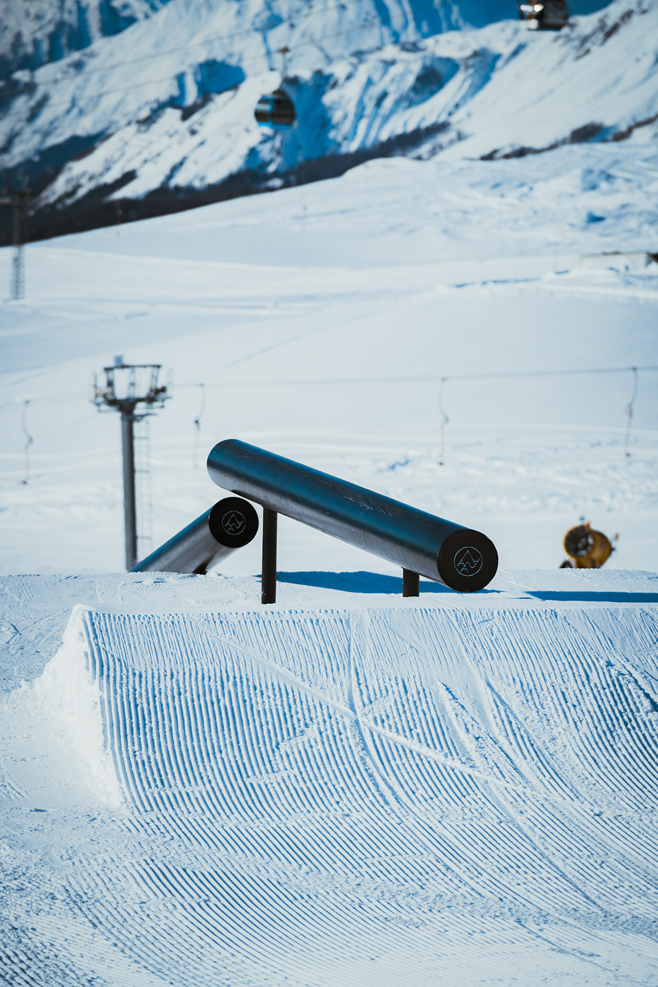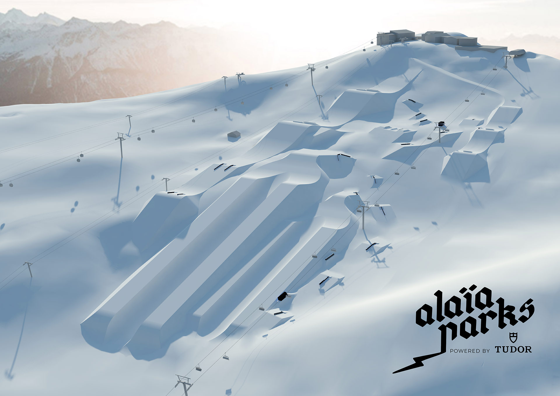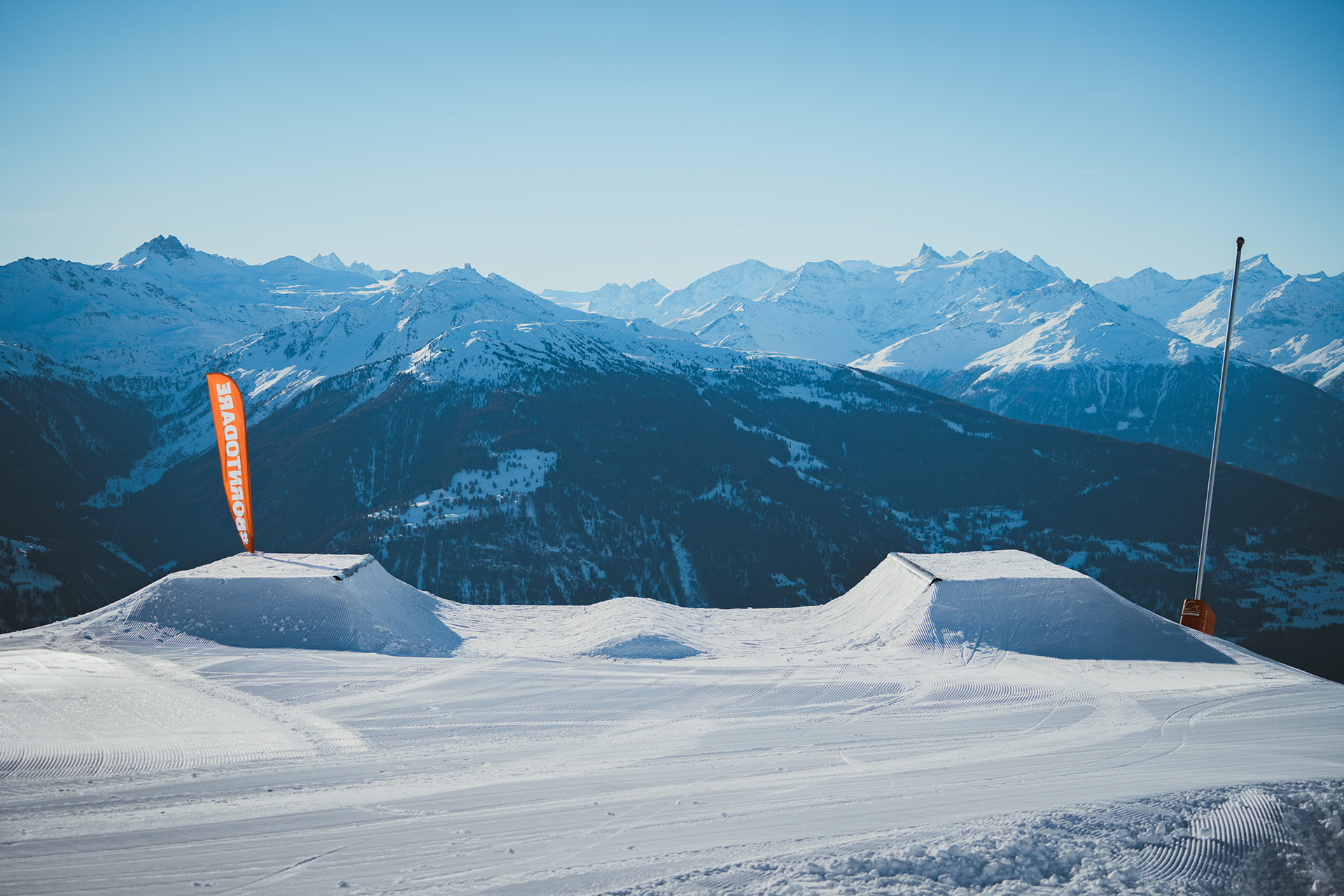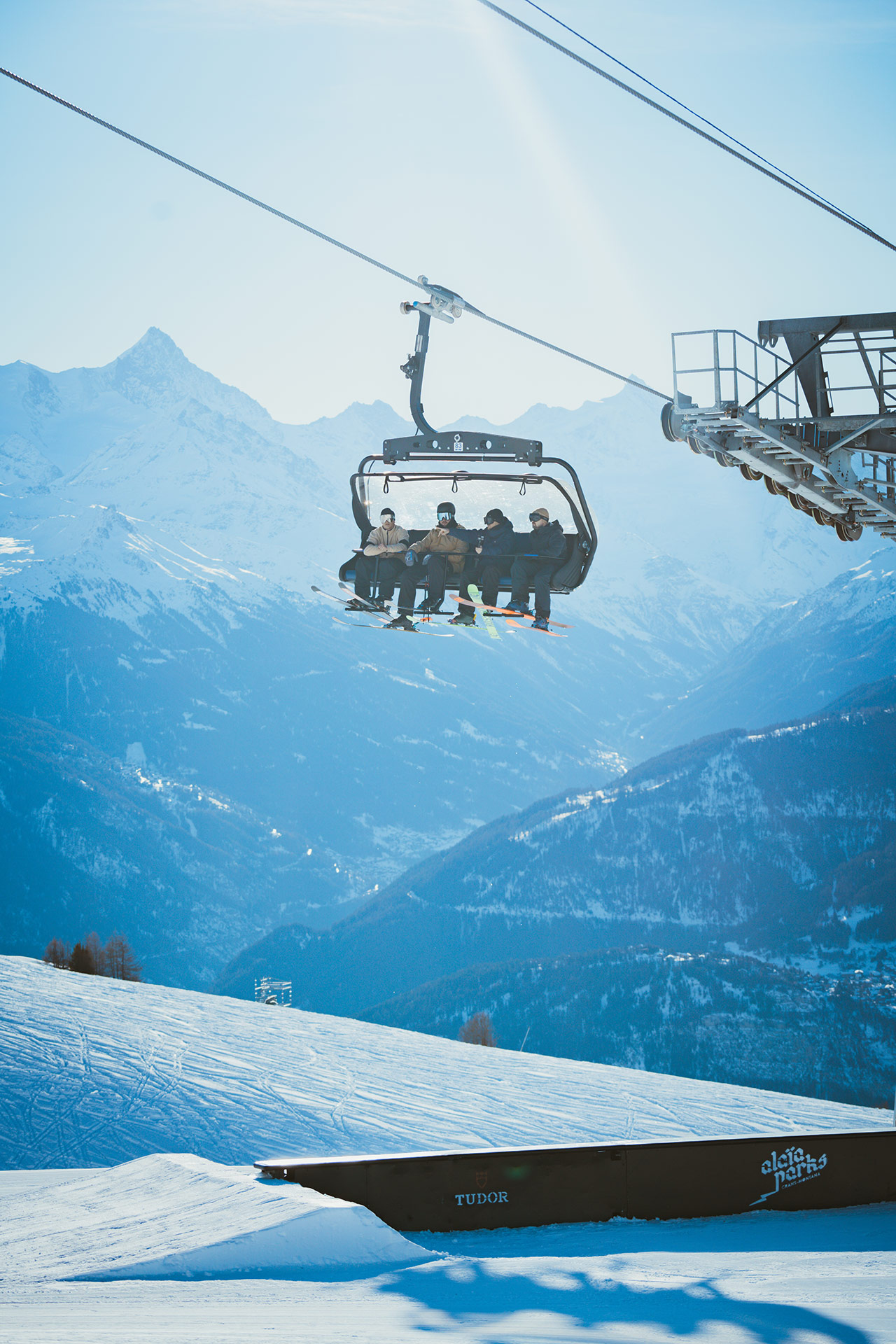 With its Olympic-size halfpipe and 140,000 square meters of terrain, the Crans-Montana snowpark was already one of Europe’s best. The new “Alaïa Parks by Tudor” promises to continue the rich tradition of freestyle in western Switzerland. Beginning in December, various lines have opened progressively, starting with the Cry d’Er zone and continuing with the “Mérignou” mini-park. Towards the end of the season, the snowpark will migrate up the mountain to the Plaine Morte Glacier, where the park will continue operation into June. On-snow operations have been entrusted to Helvepark, a Swiss company specializing in snowpark operations. You might already know them from parks like Gran Masta Park in Adelboden-Lenk or the Prinoth X Camp on the Stelvio Pass in Italy.