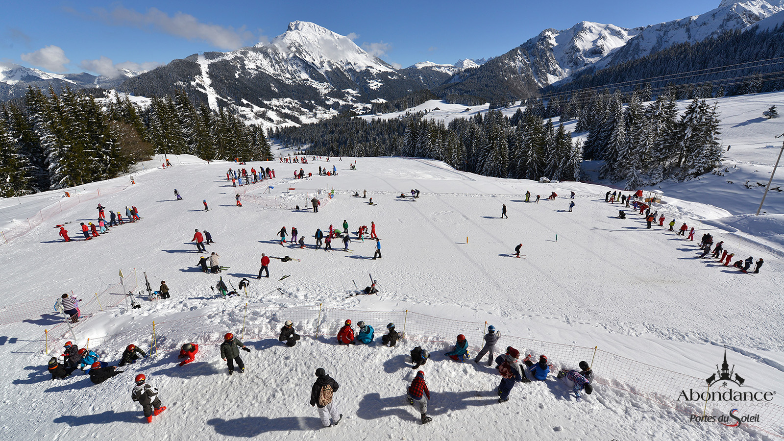 A ski class at Abondance, one of many lower-elevation resorts already feeling the effects of climate change. Photo: Abondance.org