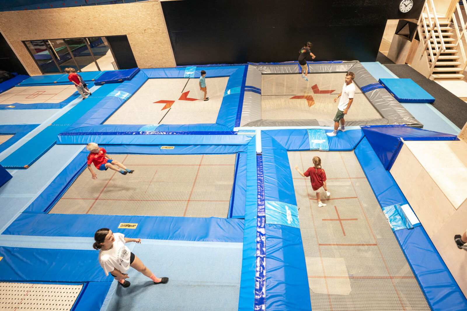 The trampoline zone features four Grand Master trampolines, plus one Grand Master trampoline into an airbag. The area has been expanded with an Airtrack for acrobatics and an additional freestyle trampoline for use with skateboards and BMX bikes. One of the newest highlights is a Fivesquare trampoline equipped with a camera system for 360-degree analysis of jumps.