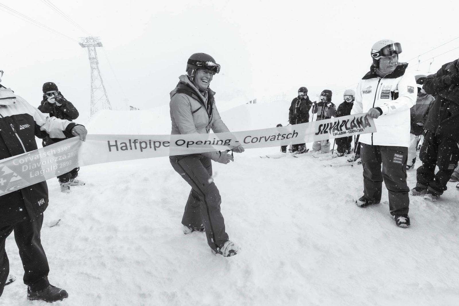 On Saturday, February 24 it was finally time. A crowd of media, staff, riders and local dignitaries packed the slope above the new halfpipe as a red ribbon was spanned across the drop-in. The Swiss team had already tested the pipe the week before—now it was time for its official public opening.