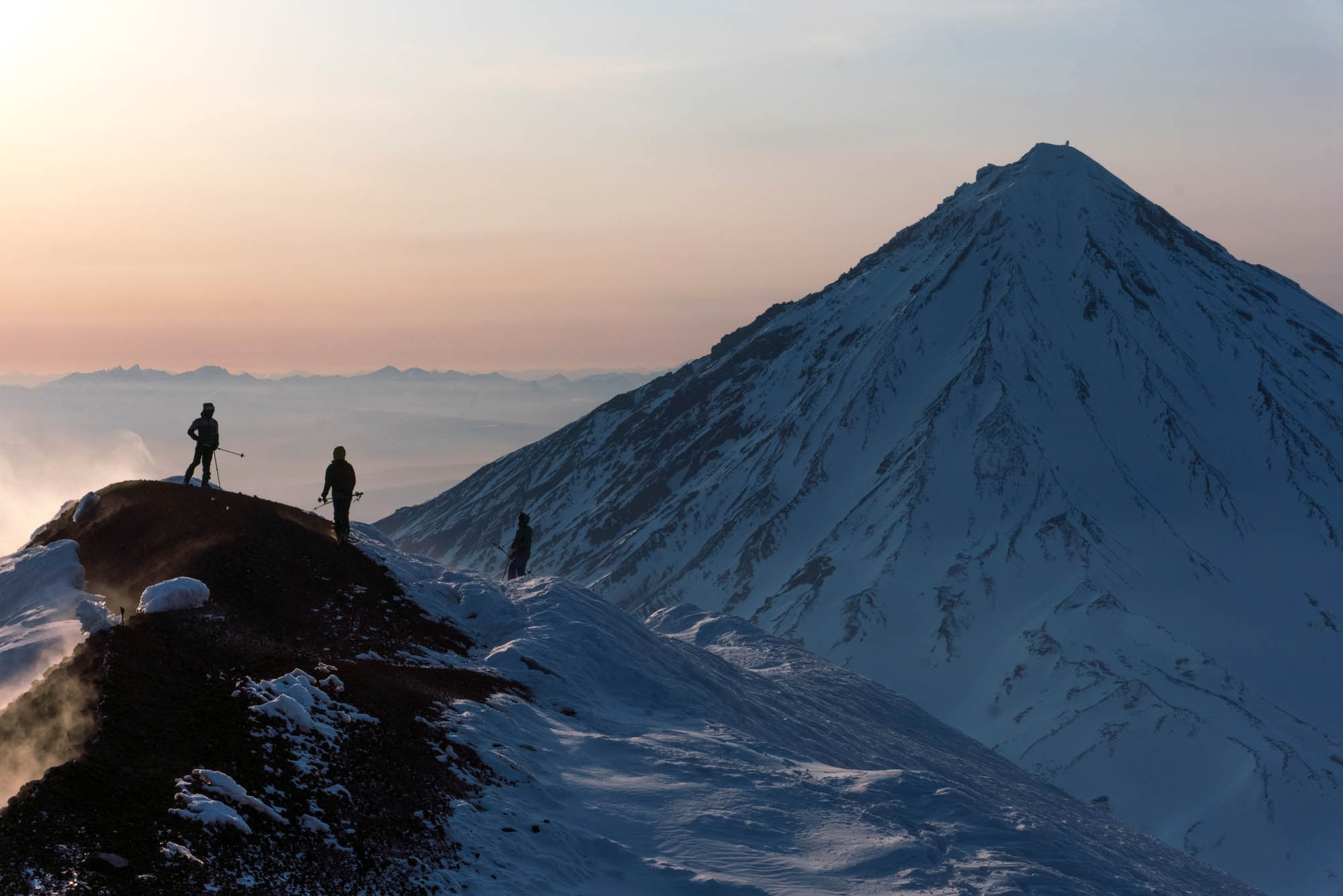 Topping out on Koryaksky with the Avachinsky volcano dominating the horizon. Photo: Herder