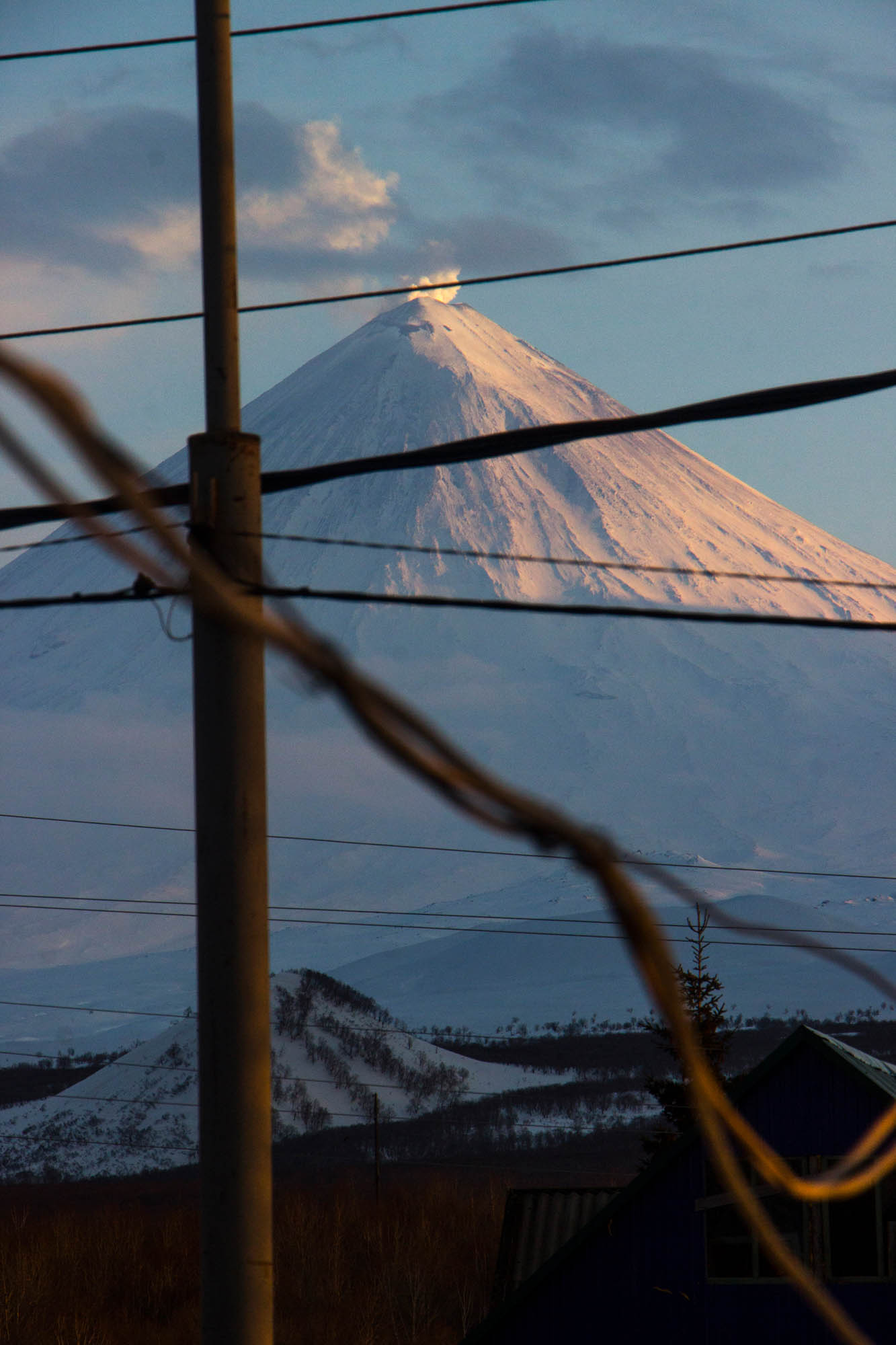 Klyuchevskaya Sopka as seen from town of Klyuchi. The day we arrived, the volcano started spewing ash, and didn’t stop until long after we left. Photo: Herder