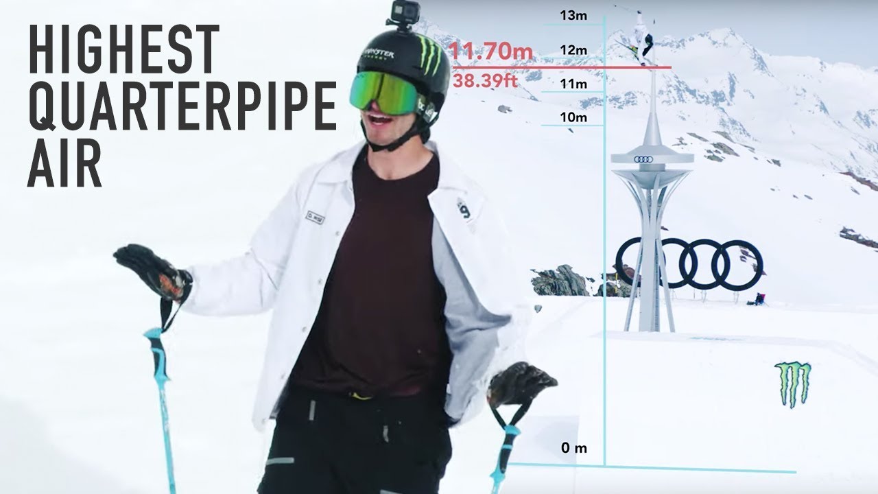 Two time Olympic gold medalist David Wise launched 11.7 meters (38 feet and 4 inches) above the coping of a quarterpipe to banked landing, logging the highest air to date on a pair of wooden planks during this week’s Audi Nines in Sölden.