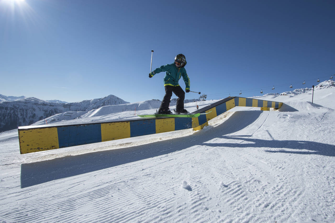 Besides the numerous fun areas which are the perfect training grounds, you will most probably stumble upon Christoph “Giggo” Wolf, a particularly dedicated freeski coach who has been encouraging talented youngsters for several years now. Some of them were taking part in the film and photo session on January 30, 2016, and showed off some of their best moves at the Freestyle Circus.