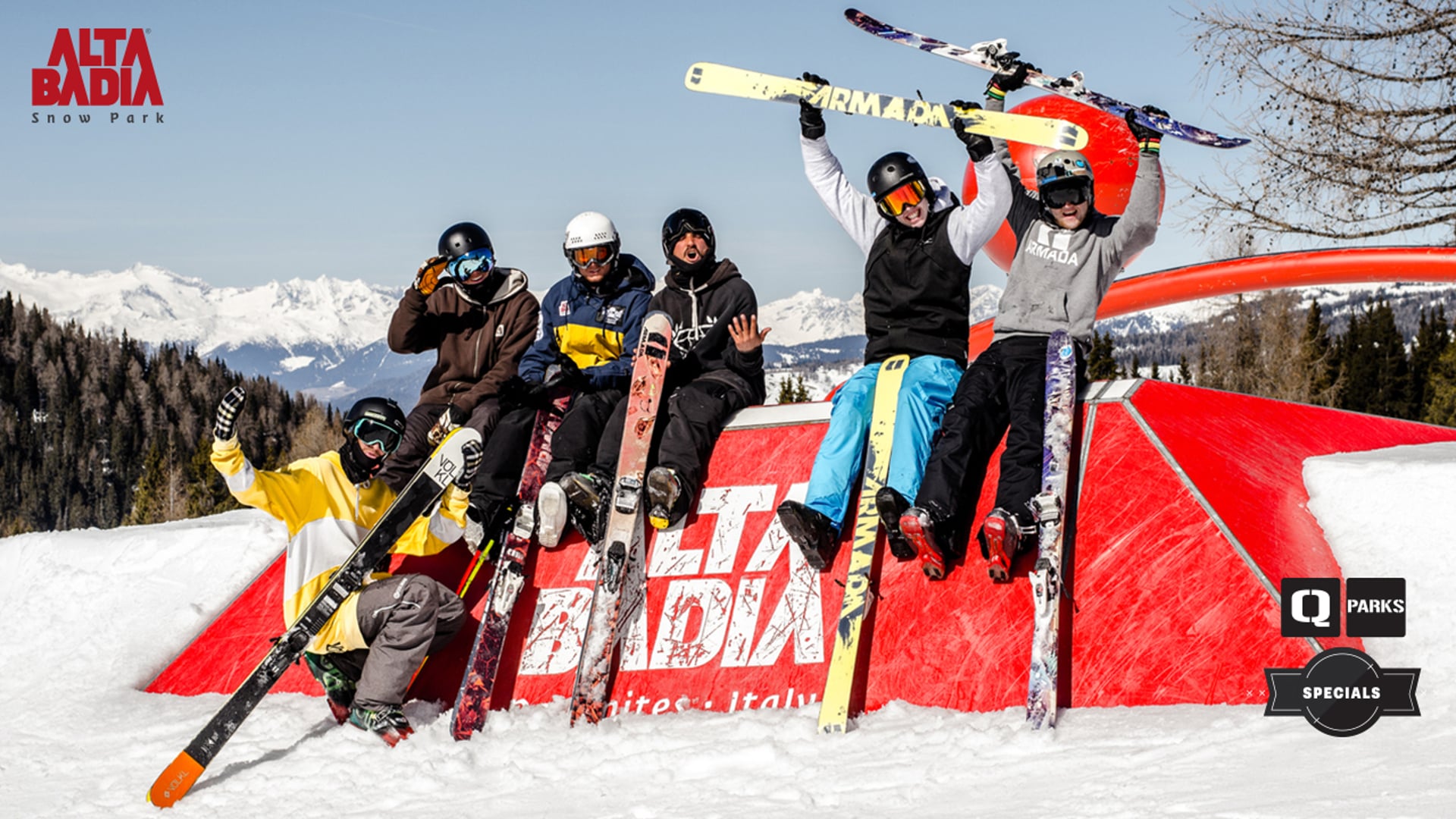 Double Cork, Triple Cork, Misty, Flatspin… Christof Schenk’s bag of tricks is huge. There’s hardly any trick that the freeskier from South Tyrol hasn’t mastered. At the coaching session on the 19th of March at the Snowpark Alta Badia, it was his duty to convey his skills to a couple of up-and-coming riders. During the first gondola ride the freeskiers were already getting their first tips from the pro. When they arrived at the top, they were facing glorious weather and a perfectly shaped park – the perfect conditions for an amazing shred fest.