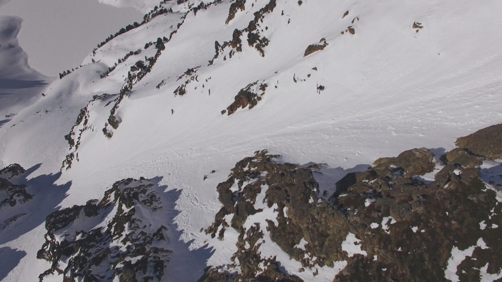 Totally! It was when we filmed the most beautiful couloir, which is towards the end of the movie. What’s quite funny is that I started early because I had to climb 400 vertical meters, ending in a couloir with a pitch of 45°, and the ascent should have taken an hour and a half. Guillaume was supposed to join me an hour later with the drone, but he dropped his cell phone from the chairlift and also forgot his radio at the chalet, so we couldn’t communicate at all…. true story! I thought to myself, “Too bad, I'm counting on him, I’ll go up the couloir anyway, push it for an hour and a half and see if he arrives.” Right when I was almost at the top, I heard a drone coming up to me! That was a big relief, and we were able to shoot perfectly. Thanks Guillaume.
